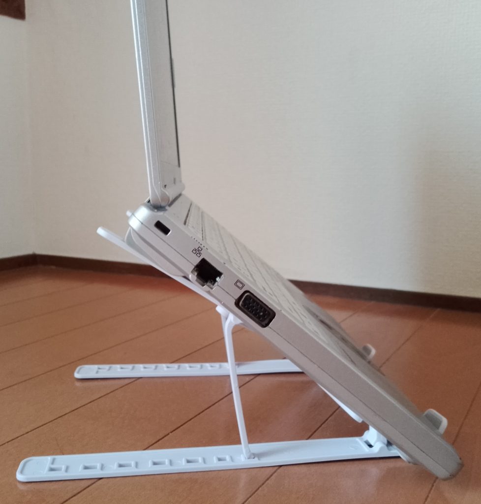 7年以上使用したレッツノートCFSZ6をスタンドに置いてみる。12.1インチ、0.849㎏の超軽量ノートPCである。