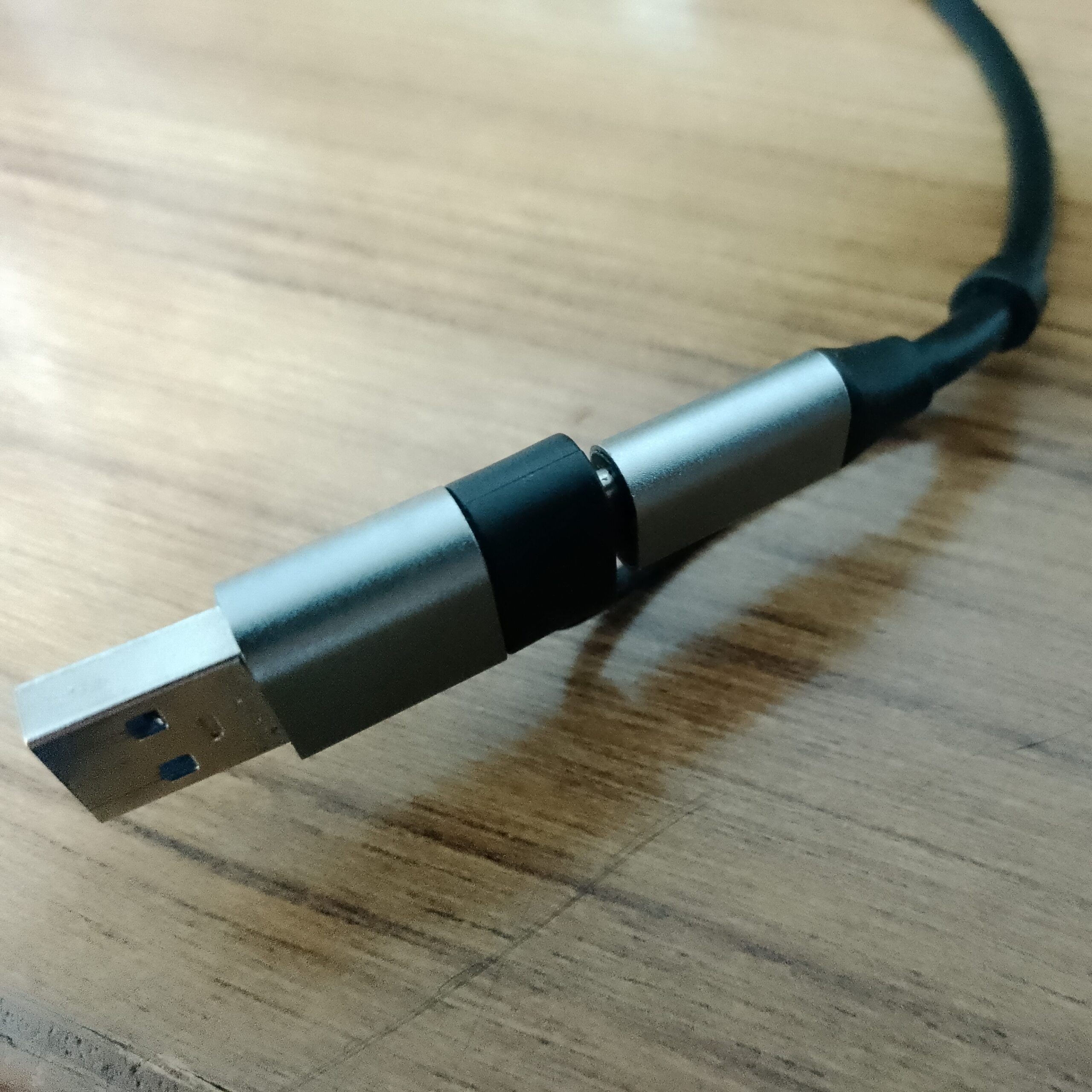 これは最初からであるが、写真のようにハブについているUSBアダプターのキャップが、接着剤が弱かったのか外れたしまう。まあ、安いし、機能には問題ないからいいか。
