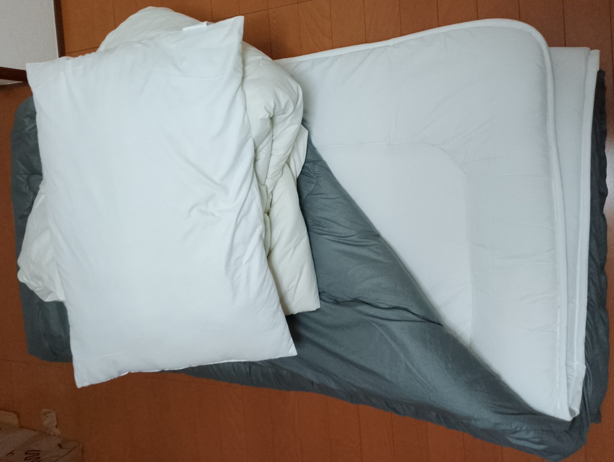 マンションの下で「到着しました」とメッセージ送ると布団類を抱えた若者が降りてきてそのまま渡してきた。